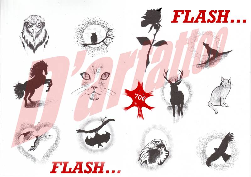 Découvrez nos tatouages flash disponibles pour une création artistique rapide et à prix réduit. Faites votre choix parmi nos modèles exclusifs et uniques.